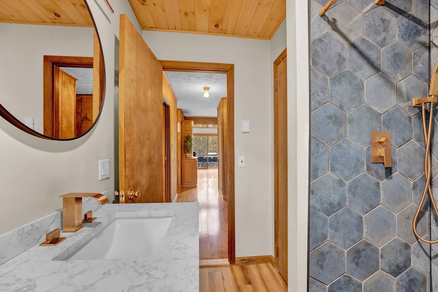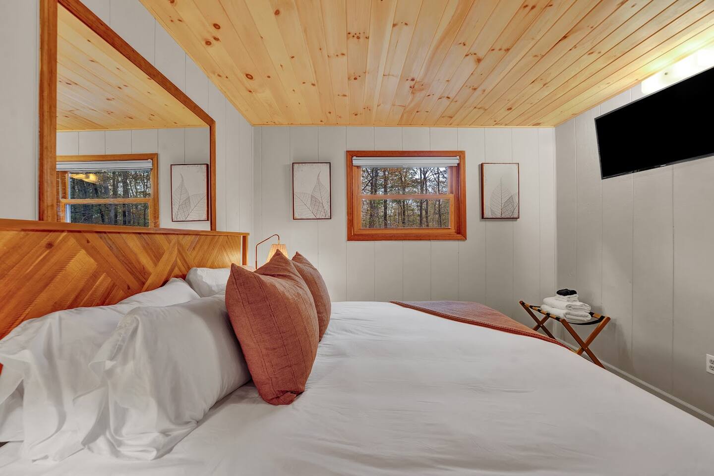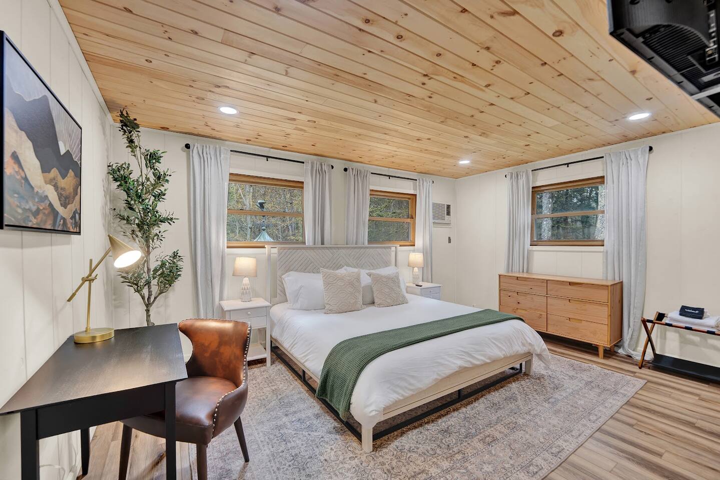 Escape to this newly renovated, designer cabin immersed in nature & packed with amenities! Enjoy the game room with pool table, skeeball, arcades & darts, relax in the sunken hot tub, sauna & private gym, or explore the community's 3 lakes, 2 beaches, splash pad, pool, sport courts & clubhouse! 🏖️ 3 min to beach & lake 🛝 25 min to Kalahari Waterpark ⛰️ 30 min to Camelback & Aquatopia Waterpark 🎰 30 min to Mount Airy Casino Experience the ultimate Poconos retreat with us-learn more below!