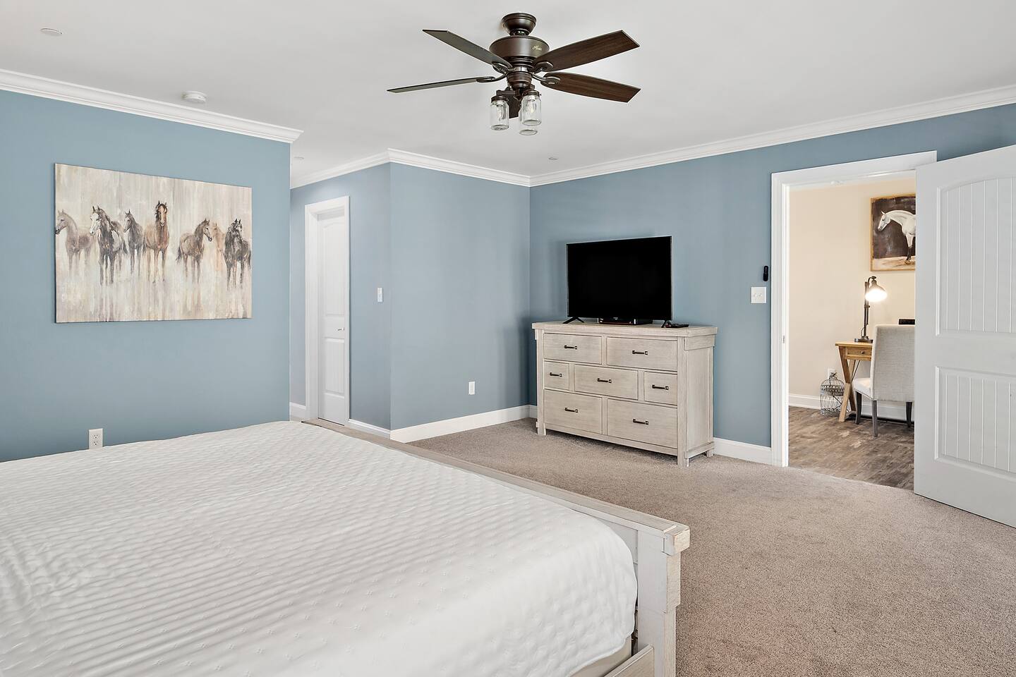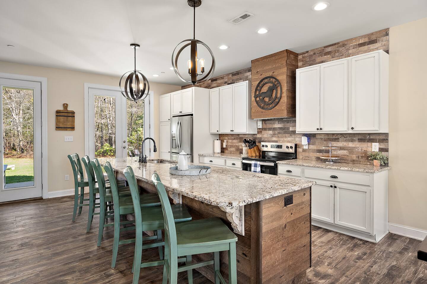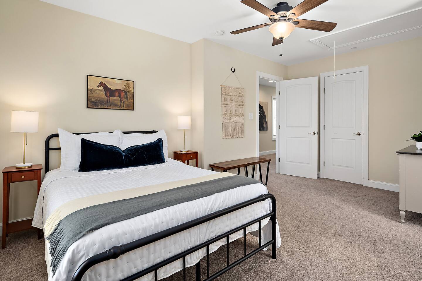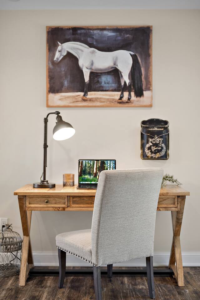 When you stay at Brooklyn Meadows - The Manor, this is your home. You have full access to the home with the exception of locked owner's closets. All other buildings and structures on the property, including the horse stables, barn, and garage are strictly off-limits. A unique code will be given to guests prior to their stay, granting you seamless access to the home, which are equipped with a smart door lock. There is parking for up to 8 vehicles.