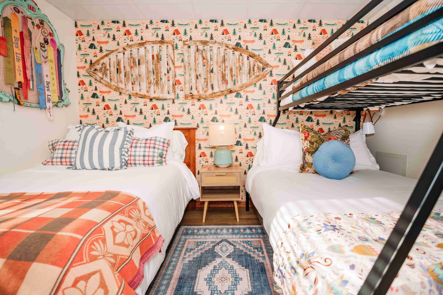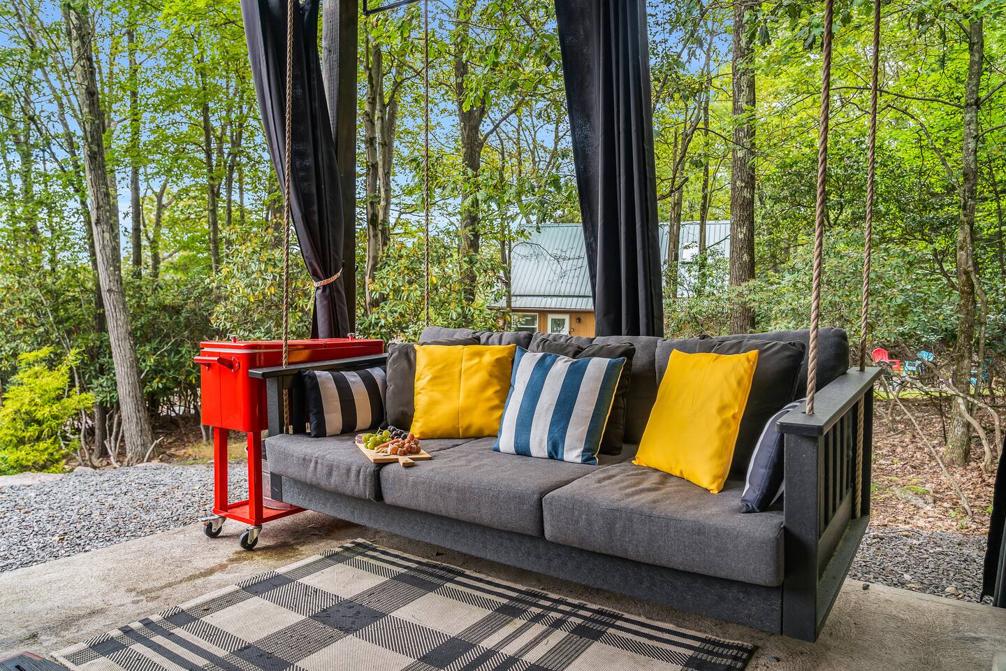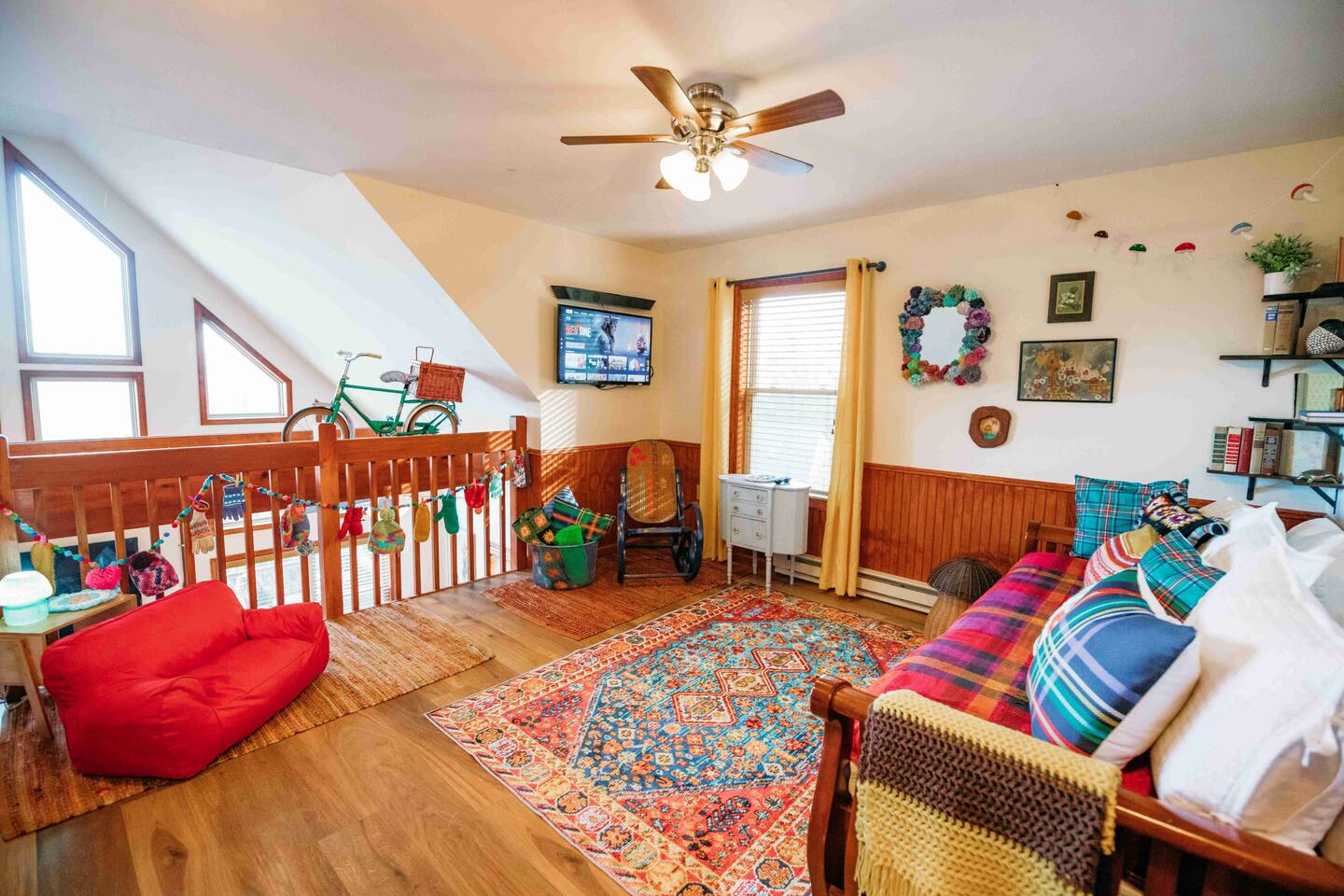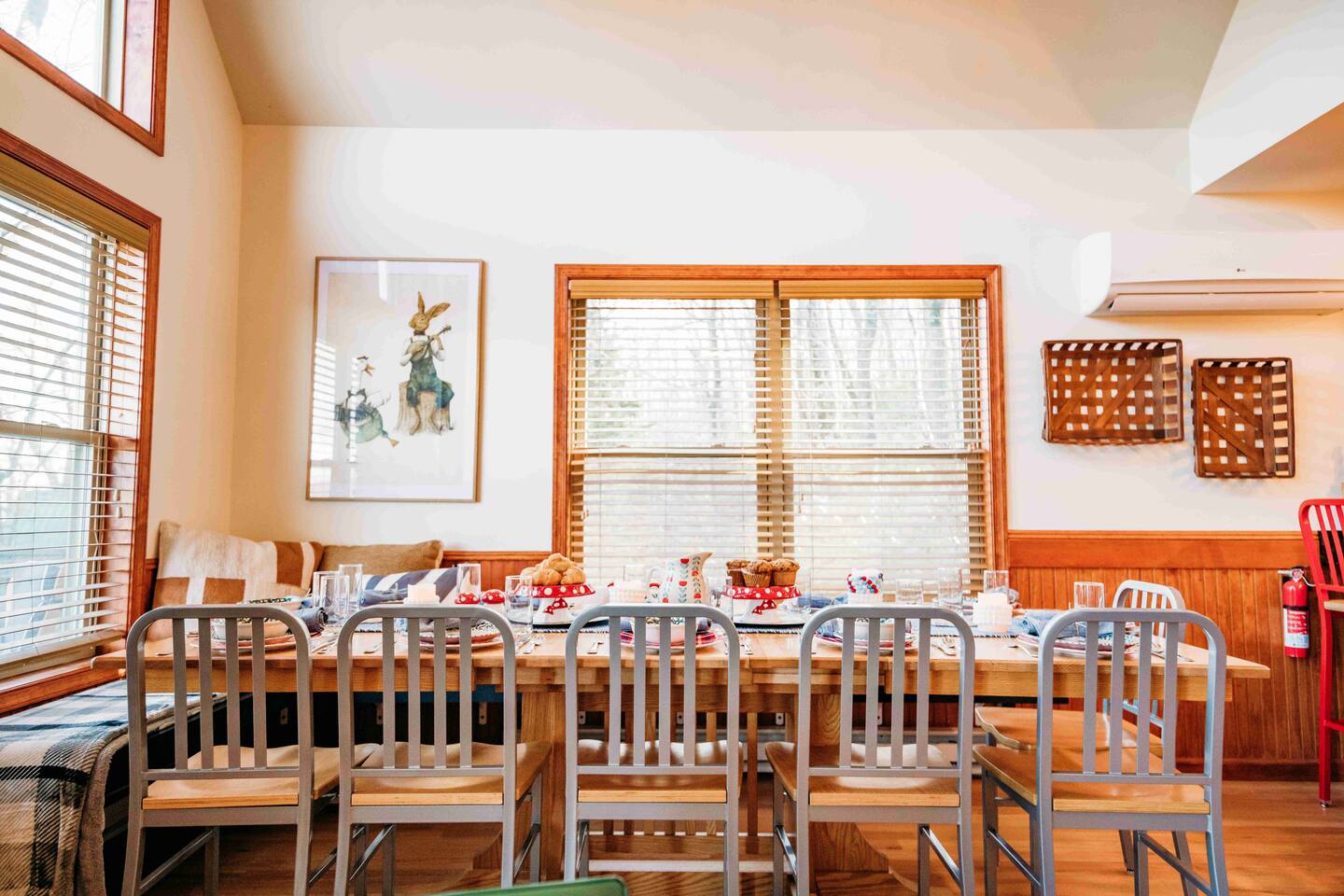 Welcome to Lake Harmony Lodge, a charming three-story chalet that blends modern luxury with classic mountain charm. Every detail has been thoughtfully designed, with a central location, direct lake views and access, and a host of amenities to ensure you experience the best of the Poconos and Lake Harmony. ↟ Past guests have said... "The house was perfect for our group - spacious, comfortable, and had music playing throughout. The beds were incredibly comfortable, and the view of the lake from the front porch was absolutely beautiful." - Maureen "Great vacation house. Lots of room for 13 guests. Beds were soft but comfortable. All amenities were plentiful and high end. Host was very responsive and never made you feel like you were bothering him." - Linda ↟ ---- KEY FEATURES: ⇢ 6 bedrooms & 13 beds, comfortably sleeping 22 guests (2 King, 1 Queen, 4 Full, 2 Full-Over-Twin Bunk Beds & 1 Trundle w. pull-out) ⇢ Floor-to-ceiling indoor-outdoor fireplace ⇢ 8-person hot tub with LAKE VIEWS ⇢ Rec room with pool table, arcade machine & 65" smartTV ⇢ Large deck overlooking the lake with brand-new outdoor sectional and dual-sided fireplace ⇢ Spacious fire pit with ample seating ⇢ Shared lake access via dock for swimming and kayak launching (kayaks provided!) ⇢ Heating & AC throughout ⇢ Level 2 Electric Vehicle (EV) charger available for use during your stay ⇢ Remote-work friendly with high-speed WiFi and a private desk ⇢ Modern, well-equipped kitchen with brand-new cookware and dinnerware ⇢ Kid-friendly amenities, including a high chair, baby gate, and pack 'n play ↟ BEDROOMS ↟ The home's 6 bedrooms provide the perfect retreat for your entire group, offering privacy, comfort, and a sense of being completely at ease. Thoughtfully designed for both adults and children, these spaces make everyone feel right at home, ensuring your vacation is effortless and filled with joy. Quietly tucked away on the first floor are two bedrooms, each with one metal bunk bed (twin over full) and one full bed, dressed in bright colors and playful, outdoor-inspired themes. The main floor hosts two bedrooms just off the kitchen. The first is a thoughtfully appointed Queen bedroom with fun, yet elegant wallpaper and corner desk, perfect for those work-from-home moments. Next door, you'll find an impressive and colorful King bedroom, conveniently located next to a full bathroom. Upstairs, you’ll be greeted by the loft’s immaculate charm, bright colors and fantastic views. The loft includes a cute rocking chair, kids bean bag chair, and a twin-sized daybed with a trundle that pulls another twin-sized bed out from underneath. Adjacent to the loft is a fun, fishing-themed bedroom with two full beds and a second spacious primary bedroom with a King bed. All bedrooms feature a mounted smart TV with cable and streaming apps, a closet, side table, dresser, and lamp, ensuring everyone has everything they need for a comfortable stay! ↟ BATHROOMS ↟ Each floor offers its own full-sized bathroom with ample space for everyone to refresh and recharge. The second and third-floor bathrooms feature a vanity sink and walk-in shower. On the main floor is another full bath with a shower-tub combo, perfect for a tranquil soak or playful bath time with the little ones. All bathrooms are fully stocked with complimentary hand towels, wash cloths, makeup towels, hair dryers, and premium bath-time essentials to ensure you feel pampered. ↟ KITCHEN ↟ The kitchen is the heart of the home, designed to inspire your inner chef with its modern layout and direct access to the dining and living areas. We provide all the quality appliances, brand new cookware, dinnerware, and utensils needed to make you feel right at home and cook up a meal to remember. Of course, we haven’t forgotten about coffee - or tea! Kickstart your mornings in the mountains with a Keurig coffee machine, offering both ground coffee and K-cup brewing options, as well as a variety of Torani syrups. For tea lovers, our extensive selection of Stash teas provides a delightful variety to suit every taste. ↟ LIVING ROOMS ↟ Step into the sun-drenched living room, where the dual-sided, floor-to-ceiling fireplace invites you to cozy up and unwind. Playful decor, plush leather couches, and an enchanting banquette seating area create an atmosphere of comfort and connection. Entertainment options are abound with a 65” smart TV featuring your favorite streaming apps and a premium cable channel package, as well as an extensive collection of games in the cupboard along the wall! Head downstairs to the recreation room, brimming with fun and excitement. Enjoy a friendly competition at the pool table, take a nostalgic dive into the arcade machine's 40 vintage games, or explore another treasure trove of board games. If relaxation is your goal, sink into the comfy sectional and enjoy another 65” smart TV for movie nights. Both floors are also equipped with a Bluetooth enabled built-in speaker system for easy connection! ↟ DINING AREA ↟ The dining area, with its stunning wooden 12-person table and cozy banquette seating, is the perfect gathering spot for shared meals, lively conversations, and cherished memories. Large windows provide corner views of Lake Harmony, adding a touch of magic to every moment. Additional counter seating for four ensures plenty of room for everyone. ↟ OUTDOOR SPACE ↟ The outdoor areas are designed to rejuvenate and delight. Step onto the expansive deck to sip your morning coffee while taking in serene lake views from the Adirondack chairs. Snuggle into the teakwood lounger with a book, or gather around the dual-sided indoor/outdoor fireplace on the luxurious sectional for evenings filled with warmth and laughter. Downstairs, the 8-person hot tub offers the ultimate in relaxation, complete with privacy curtains. Nearby, an oversized daybed swing beckons you to unwind. In the backyard, gather around the fire pit with ample 
