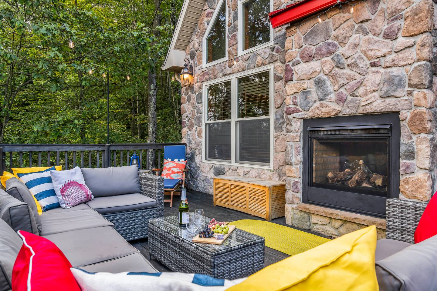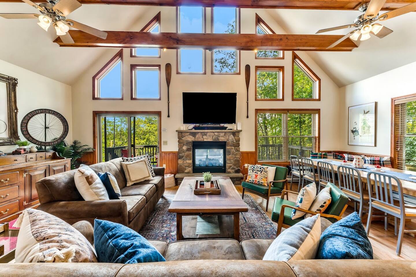 Step into fun & relaxation at this vibrant 6BR cabin overlooking Lake Harmony! With playful, luxurious design & stunning lake views, it's the perfect mtn retreat. Launch the kayaks from the dock, walk to the town’s best bars, or unwind in the hot tub, by the fire pit or cozied up by the indoor/outdoor fireplace! 🍷 1 min to Lake Harmony's best bars & restaurants 🏊 4 min walk to lake & private dock 🛝 5 min to Split Rock H2Oooo Waterpark Experience the Poconos with us - learn more below!