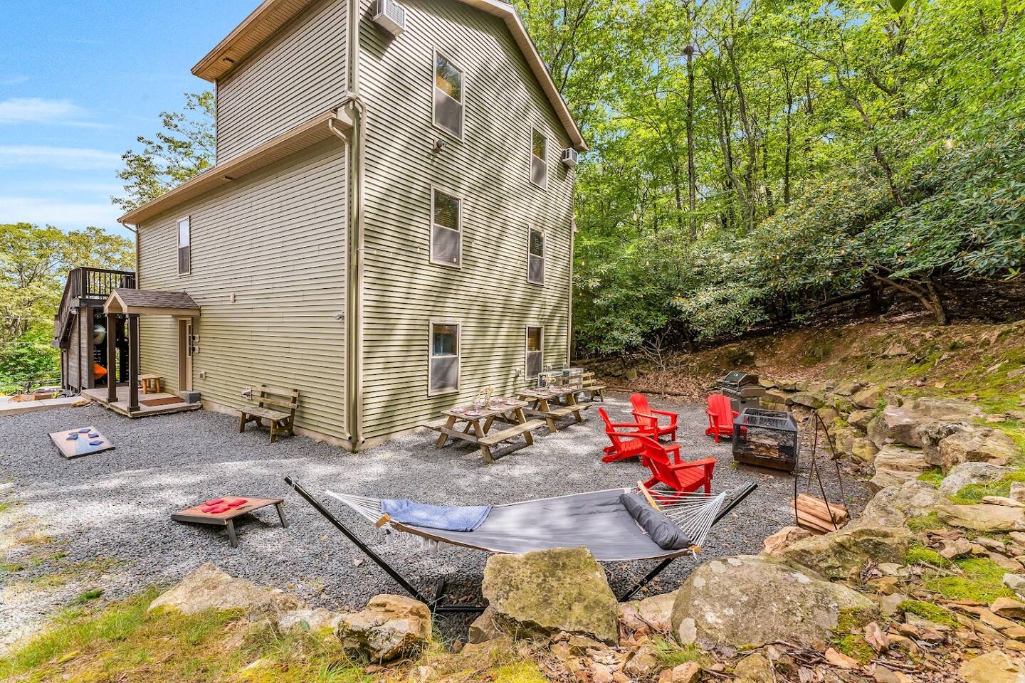 ➡️ Guests must be 25+ years old to book, per local township regulations. 🧻 We provide a robust set of premium starter supplies (shampoo & conditioner, body wash, ultra soft toilet paper, paper towels, trash bags, dishwasher & laundry pods, etc.), but do not resupply mid-stay. If you’re with us for more than 3 days, please plan on purchasing some of your own items. 🪵 Firewood is not provided but can be purchased locally at Lake Harmony Market or Ahart’s Market. 🚗 🔌 The home is equipped with an AC Level 2 Electric Vehicle (EV) charger that is available for use during your stay at no add'l charge. 🛡️ We strongly recommend you purchase travel insurance to protect against unforeseen changes to your plans, as we cannot make exceptions to our stated cancellation policy. Bookings include protection through the Waivo damage protection program (damage protection only, not travel insurance). 🧹 Note: Lake Harmony Lodge is a large home with many amenities, and thus we pay a premium to keep it sparkling clean for guests. We DO NOT make ANY money on the cleaning fee or on Airbnb’s guest service fee!