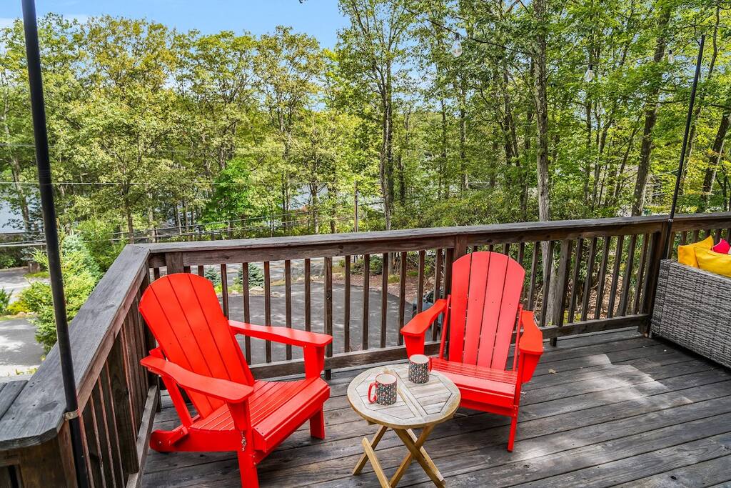 Welcome to Lake Harmony Lodge, a charming three-story chalet that blends modern luxury with classic mountain charm. Every detail has been thoughtfully designed, with a central location and a host of amenities to ensure you experience the best of the Poconos and Lake Harmony. “The house was immaculately clean and beautifully decorated, providing a cozy and welcoming atmosphere. The amenities provided were top-notch, ensuring that we had everything we needed for a comfortable stay…” – Cristian KEY FEATURES: ⇢ 6 bedrooms, comfortably sleeping 16+ guests (2 King, 1 Queen, 4 Full, 2 Full-Over-Twin Bunk Beds & 1 Trundle) ⇢ Floor-to-ceiling indoor-outdoor fireplace ⇢ 8-person hot tub with lake views ⇢ Recreation room with pool table and arcade machine ⇢ Large deck overlooking the lake with brand-new outdoor sectional and dual-sided fireplace ⇢ Spacious fire pit with ample seating ⇢ Shared lake access via dock for swimming and kayak launching (kayaks provided) ⇢ Heating & AC throughout the home ⇢ Remote-work friendly with high-speed WiFi and a private desk ⇢ Modern, well-equipped kitchen with brand-new cookware and dinnerware ⇢ Kid-friendly amenities, including a high chair, baby gate, and pack 'n play ↟ BEDROOMS ↟ The home's 6 bedrooms provide privacy and comfort for your entire group - adults and children alike! Quietly tucked away on the first floor are two bedrooms, each with one metal bunk bed (twin over full) and one full bed, dressed in bright colors and playful, outdoor-inspired themes. The main floor hosts two bedrooms just off the kitchen. The first is a thoughtfully appointed Queen bedroom with fun, yet elegant wallpaper and corner desk, perfect for those work-from-home moments. Next door, you'll find an impressive and colorful King bedroom, conveniently located next to a full bathroom. Upstairs, you’ll be greeted by the loft’s immaculate charm, bright colors and fantastic views. The loft includes a daybed with a trundle that pulls out underneath, a cute rocking chair and kids bean bag chair. Adjacent to the loft is a fun, fishing-themed bedroom with two full beds and a second spacious primary bedroom with a King bed. All bedrooms feature a mounted smart TV with cable and streaming apps, a closet, side table, dresser, and lamp, ensuring everyone has everything they need for a comfortable stay! ↟ BATHROOMS ↟ Each floor offers its own full-sized bathroom with ample space for everyone to refresh and recharge. The second and third-floor bathrooms feature a vanity sink and walk-in shower. On the main floor is another full bath with a shower-tub combo, perfect for a relaxing soak or playful bath time with the little ones. All bathrooms are fully stocked with complimentary hand towels, wash cloths, makeup towels, hair dryers, and bath-time essentials. ↟ KITCHEN ↟ The chef in your group will love the accessibility and openness of this kitchen, with direct access to the dining room and main living room. We provide all the quality appliances, brand new cookware, dinnerware, and utensils needed to make you feel right at home and cook up a meal to remember. Of course, we haven’t forgotten about coffee - or tea! Kickstart your mornings in the mountains with a Keurig coffee machine, offering both ground coffee and K-cup brewing options, as well as a variety of Torani syrups. For tea lovers, our extensive selection of Stash teas provides a delightful variety to suit every taste. ↟ LIVING ROOMS ↟ Step into the warm, sun-lit living room and be surrounded by playful decor, a stunning floor-to-ceiling, dual-sided fireplace, and an enchanted banquette seating area. This inviting space features two oversized brown leather couches, cozy accent chairs, and a large barn-wood coffee table. For entertainment, there is a 65” smart TV with cable and streaming apps, as well as dozens of games in the storage console. Downstairs is a jam-packed, newly renovated recreation room! Challenge friends and family to a game of billiards, try your hand at one of 40 vintage arcade games, or open the storage chest for a wide variety of boardgames. Prefer to relax? Settle into the cozy sectional and catch up on your favorite shows or movies with another 65” smartTV. ↟ DINING AREA ↟ Central to the second floor’s large, open layout is a statement dining room, featuring a wooden 12-person dining table, cozy yet practical banquette seating, and corner views of Lake Harmony - perfect for memorable dinners and late nights alike. There is also additional counter seating for four. ↟ OUTDOOR SPACE ↟ Step through the living room door and onto a large deck designed for maximum comfort. Sip your morning coffee and take in views of Lake Harmony in the polywood Adirondack chairs, snuggle up on the teakwood lounger with your favorite book, or gather round the indoor/outdoor dual-side fireplace with your loved ones on our brand-new outdoor sectional. Downstairs, dip into our 8-person hot tub with curtains for added privacy. Not feeling a soak? Relax and settle into the oversized daybed swing. Around back you’ll find a large metal fire pit with additional seating, a picnic table and stainless steel BBQ gas grill. ↟ LAKE ACCESS ↟ Guests have access to a shared dock for swimming and kayak launching (kayaks are provided) only. For sunbathing and lounging, nearby beach access is available at the Lake Harmony Inn (day pass required).
