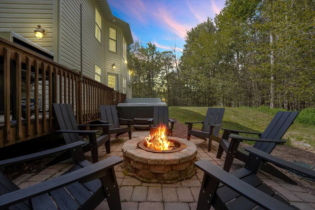 Escape to this newly renovated, 5BR home packed with fun & amenities in the heart of the Poconos! Enjoy the game room with pool table, pacman arcade & foosball, relax in the hot tub, or explore the community's 18-hole golf course, beach, pool, fitness center, sport courts & clubhouse! ⛳ 3 min to beach & golf course 🛝 7 min to Kalahari Waterpark 🏖️ 15 min to Camelbeach Waterpark 🧗 20 min to Skytop Adventure Center Experience the ultimate Poconos retreat with us & learn more below!
