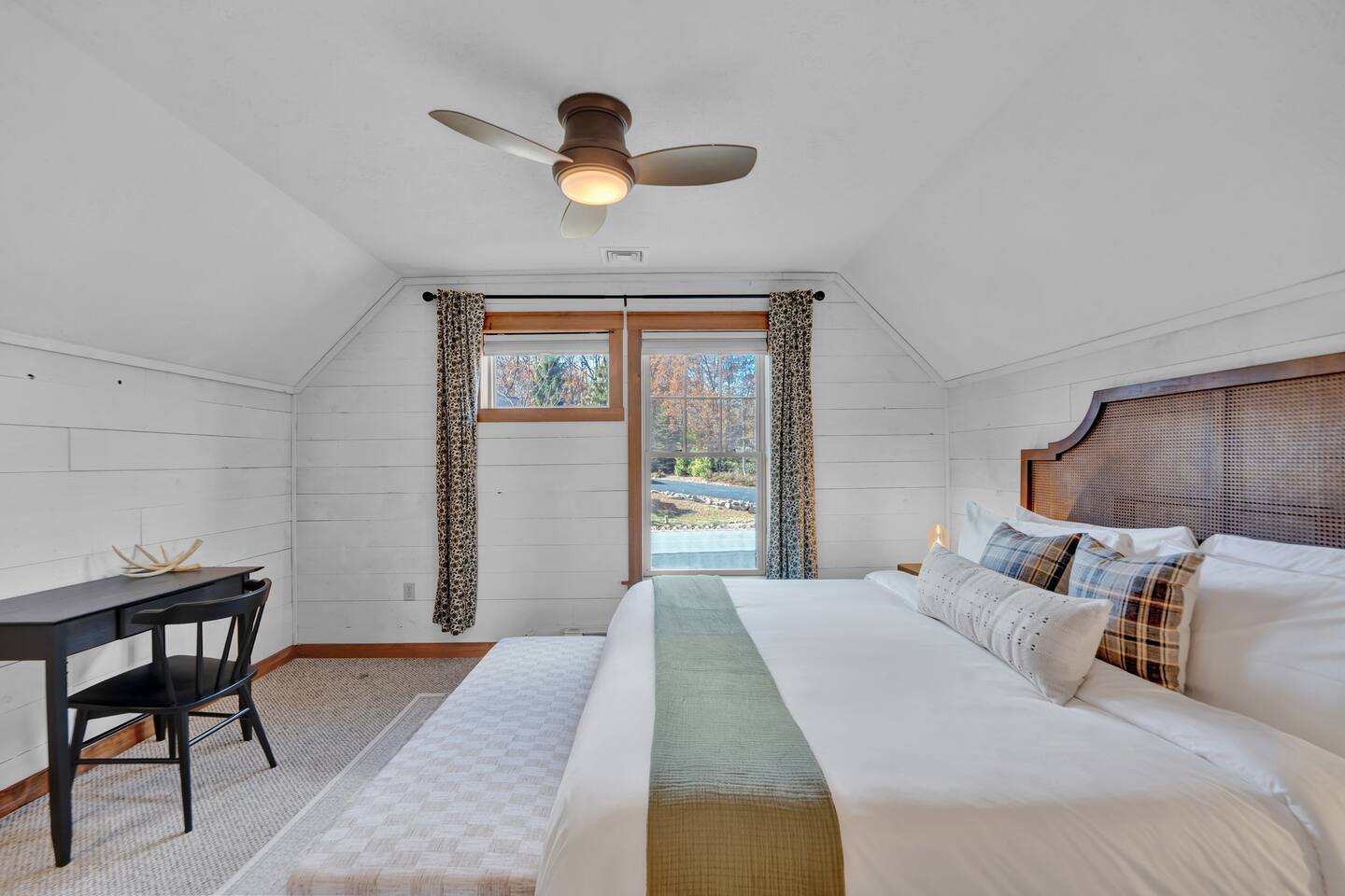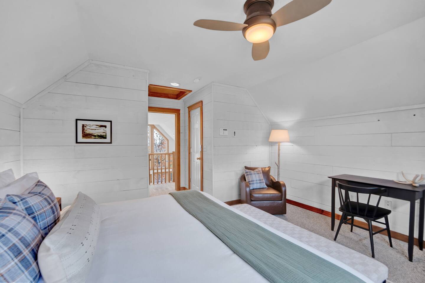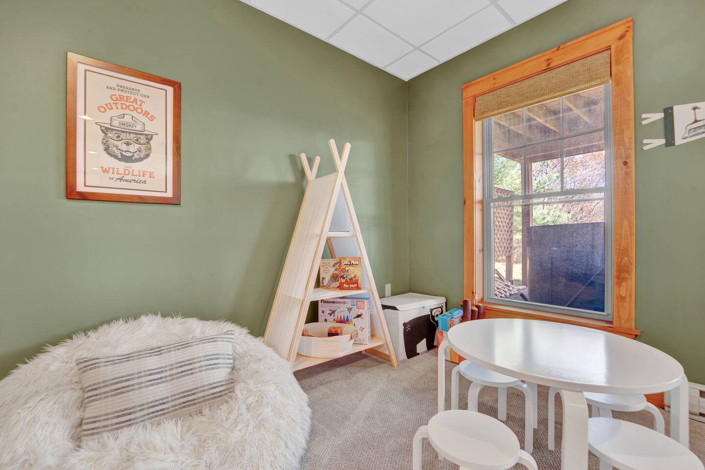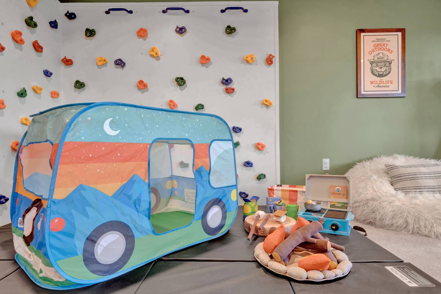 Welcome to Sunrise Chalet, a stylish and warm mountain-retreat basecamp for your Poconos adventure! Just minutes from Camelback’s slopes and trails, this inviting mountain home offers the perfect mix of comfort and excitement — unwind in the hot tub and take in the mountain views, let the kids explore and play on the custom-built climbing wall, or gather round the dining table late into the night. ✨ KEY FEATURES ✨ - 2,300+ sq. ft. | 3 bedrooms | 3 baths | Sleeps 8 - 6-person hot tub w. seasonal mtn views - Rec room with shuffleboard table, 80” smartTV, custom climbing wall & kids corner - Kid-friendly w/ high-chair, stroller, baby gate, bedrails, floorseat, bottle warmer & pack n’ play provided - Community outdoor pool, splash zone, playground & tennis courts - Large deck with outdoor dining, couch & rocking chairs, propane fire pit & Weber gas grill - Central AC throughout - Natural stone wood burning fireplace - Modern, well-equipped kitchen with quality cookware, appliances, and air-fryer 🛏️ BEDROOMS ↟ The home's 3 bedrooms offer comfort & privacy for your whole group – adults & children alike! On the main floor, you’ll find two comfortable queen bedrooms conveniently located next to a full bathroom with a tub. Each room is thoughtfully decorated and furnished with a dresser and closet. Upstairs, the master bedroom is a secluded en-suite, offering a king-sized bed, walk-in closet, dresser, dedicated workspace, and attached full bathroom. 🛁 BATHROOMS ↟ Enjoy a retreat-within-your-retreat in our three full-sized bathrooms. The main floor bathroom has a convenient shower/tub combo and a vanity sink, perfect for everyday use and bathing the kiddos after a long day of adventure. Upstairs, the master bathroom offers a spacious shower, tub, and a double-sink vanity with a large mirror - great for couples or families. The downstairs bathroom includes a large walk-in shower and sink, ideal for guests or quick refreshes. All bathrooms are fully stocked with complimentary hand towels, wash cloths, makeup towels, hair dryers, and premium bath-time essentials 🍳 KITCHEN & DINING AREA ↟ This bright, open kitchen makes meal time a breeze, with easy access to the 8-seat dining table and serene views of the surrounding woods. It’s fully stocked with stainless steel appliances—including a fridge with water dispenser, wine fridge, oven, stove, microwave, dishwasher, air fryer, crockpot and waffle maker - plus all the cookware, utensils, and serving pieces you need to create memorable meals with ease. Can’t forget the coffee (and tea, for all our tea people)! Kickstart your morning in the mountains with a Keurig dual drip & k-cup coffee machine. Or, choose from our extensive selection of Stash teas for a delightful variety to suit your taste buds. 🛋️ LIVING AREAS ↟ This living room is made for relaxing! Sink into the large L-shaped sectional or the stylish accent chair, both facing a cozy stone fireplace. Enjoy your favorite shows on the wall-mounted smartTV with all of your favorite streaming apps, play games with loved ones, or simply unwind after a day outdoors. Downstairs, the recreation room offers endless fun for everyone. Challenge each other on the shuffleboard table, let the kids explore the dedicated play corner with toys, books, and a custom-built, padded rock climbing wall, or sink into the couch while enjoying your favorite show on the 80” mounted smart TV. 🌅 OUTDOOR SPACE ↟ Enjoy direct views of Camelback mountain and the serenity of nature on our two-story deck! The upper deck features a propane fire pit table surrounded by a comfy outdoor sectional and chairs - perfect for cozy evenings under the stars. There’s also a 6-person dining table with an umbrella and Weber gas grill for al fresco meals with family or friends. The lower deck is your private relaxation spot, complete with a state-of-the-art hot tub, hammock, and 4-person outdoor dining table. Both levels offer stunning seasonal views of the ski slopes, making this the perfect setting for morning coffee, sunset cocktails, or simply unwinding after a day of adventure. Lastly, enjoy access (separate fee required)to the community's amazing amenities, including a brand new outdoor pool, splash zone, kid's playground and tennis courts.