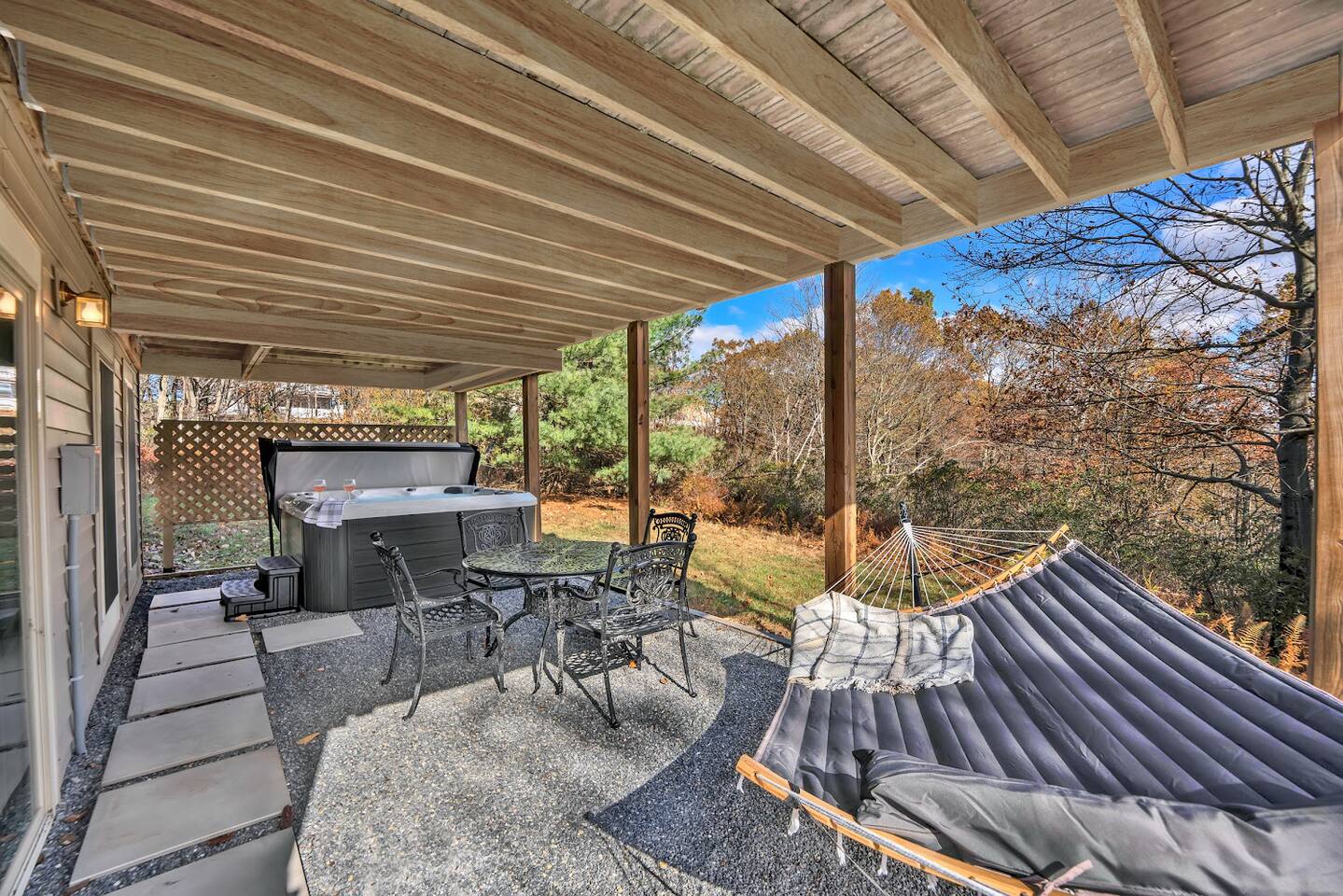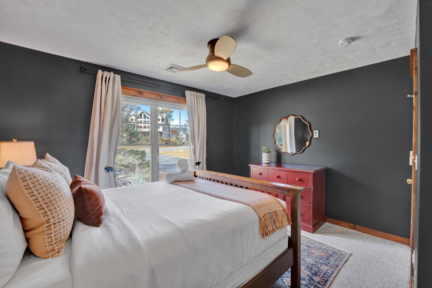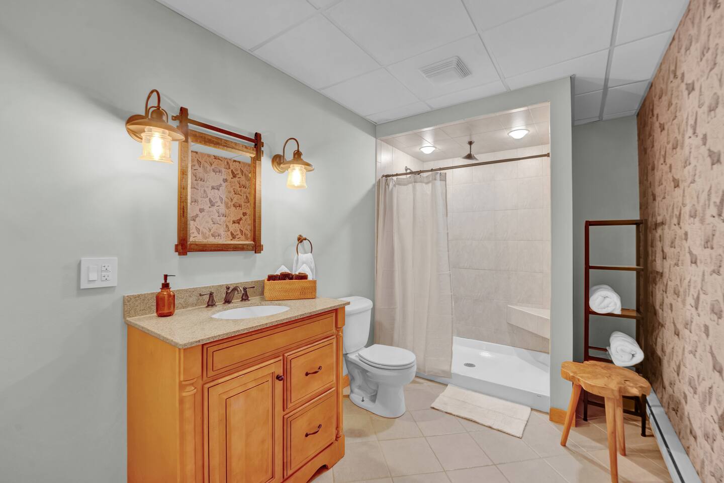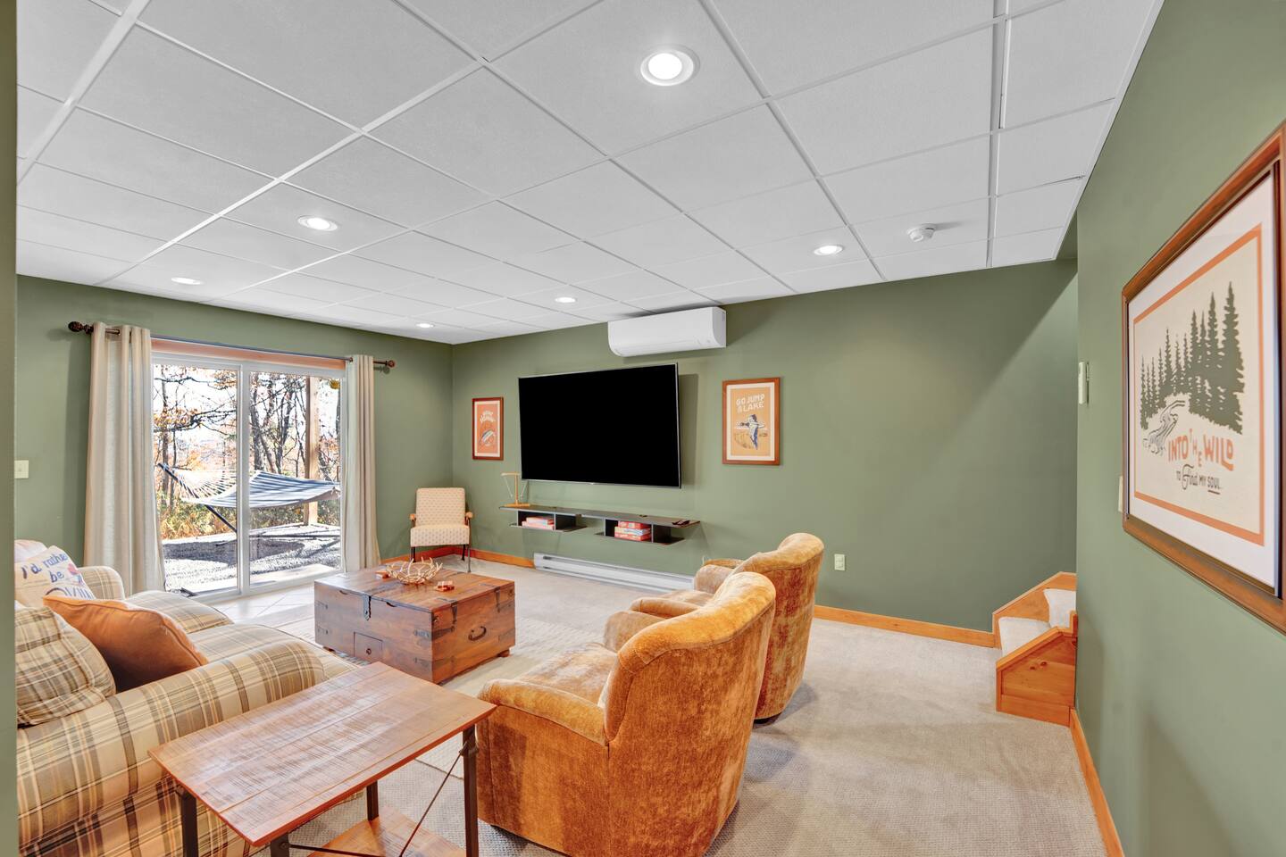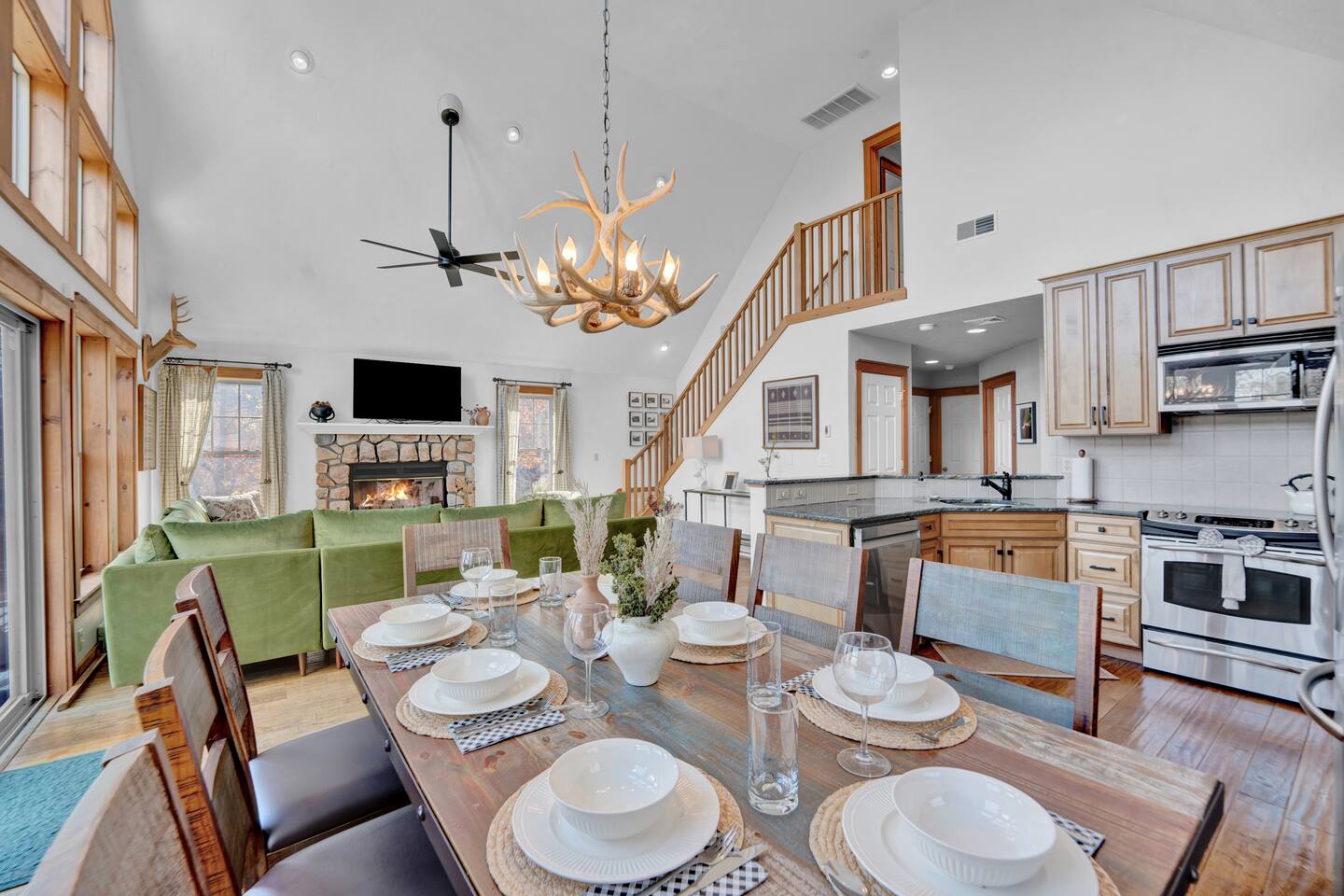 Welcome to Sunrise Chalet, a stylish and warm mountain-retreat basecamp for your Poconos adventure! Just minutes from Camelback’s slopes and trails, this inviting mountain home offers the perfect mix of comfort and excitement — unwind in the hot tub and take in the mountain views, let the kids explore and play on the custom-built climbing wall, or gather round the dining table late into the night. ✨ KEY FEATURES ✨ - 2,300+ sq. ft. | 3 bedrooms | 3 baths | Sleeps 8 - 6-person hot tub w. seasonal mtn views - Rec room with shuffleboard table, 80” smartTV, custom climbing wall & kids corner - Kid-friendly w/ high-chair, stroller, baby gate, bedrails, floorseat, bottle warmer & pack n’ play provided - Community outdoor pool, splash zone, playground & tennis courts - Large deck with outdoor dining, couch & rocking chairs, propane fire pit & Weber gas grill - Central AC throughout - Natural stone wood burning fireplace - Modern, well-equipped kitchen with quality cookware, appliances, and air-fryer 🛏️ BEDROOMS ↟ The home's 3 bedrooms offer comfort & privacy for your whole group – adults & children alike! On the main floor, you’ll find two comfortable queen bedrooms conveniently located next to a full bathroom with a tub. Each room is thoughtfully decorated and furnished with a dresser and closet. Upstairs, the master bedroom is a secluded en-suite, offering a king-sized bed, walk-in closet, dresser, dedicated workspace, and attached full bathroom. 🛁 BATHROOMS ↟ Enjoy a retreat-within-your-retreat in our three full-sized bathrooms. The main floor bathroom has a convenient shower/tub combo and a vanity sink, perfect for everyday use and bathing the kiddos after a long day of adventure. Upstairs, the master bathroom offers a spacious shower, tub, and a double-sink vanity with a large mirror - great for couples or families. The downstairs bathroom includes a large walk-in shower and sink, ideal for guests or quick refreshes. All bathrooms are fully stocked with complimentary hand towels, wash cloths, makeup towels, hair dryers, and premium bath-time essentials 🍳 KITCHEN & DINING AREA ↟ This bright, open kitchen makes meal time a breeze, with easy access to the 8-seat dining table and serene views of the surrounding woods. It’s fully stocked with stainless steel appliances—including a fridge with water dispenser, wine fridge, oven, stove, microwave, dishwasher, air fryer, crockpot and waffle maker - plus all the cookware, utensils, and serving pieces you need to create memorable meals with ease. Can’t forget the coffee (and tea, for all our tea people)! Kickstart your morning in the mountains with a Keurig dual drip & k-cup coffee machine. Or, choose from our extensive selection of Stash teas for a delightful variety to suit your taste buds. 🛋️ LIVING AREAS ↟ This living room is made for relaxing! Sink into the large L-shaped sectional or the stylish accent chair, both facing a cozy stone fireplace. Enjoy your favorite shows on the wall-mounted smartTV with all of your favorite streaming apps, play games with loved ones, or simply unwind after a day outdoors. Downstairs, the recreation room offers endless fun for everyone. Challenge each other on the shuffleboard table, let the kids explore the dedicated play corner with toys, books, and a custom-built, padded rock climbing wall, or sink into the couch while enjoying your favorite show on the 80” mounted smart TV. 🌅 OUTDOOR SPACE ↟ Enjoy direct views of Camelback mountain and the serenity of nature on our two-story deck! The upper deck features a propane fire pit table surrounded by a comfy outdoor sectional and chairs - perfect for cozy evenings under the stars. There’s also a 6-person dining table with an umbrella and Weber gas grill for al fresco meals with family or friends. The lower deck is your private relaxation spot, complete with a state-of-the-art hot tub, hammock, and 4-person outdoor dining table. Both levels offer stunning seasonal views of the ski slopes, making this the perfect setting for morning coffee, sunset cocktails, or simply unwinding after a day of adventure. Lastly, enjoy access (separate fee required)to the community's amazing amenities, including a brand new outdoor pool, splash zone, kid's playground and tennis courts.