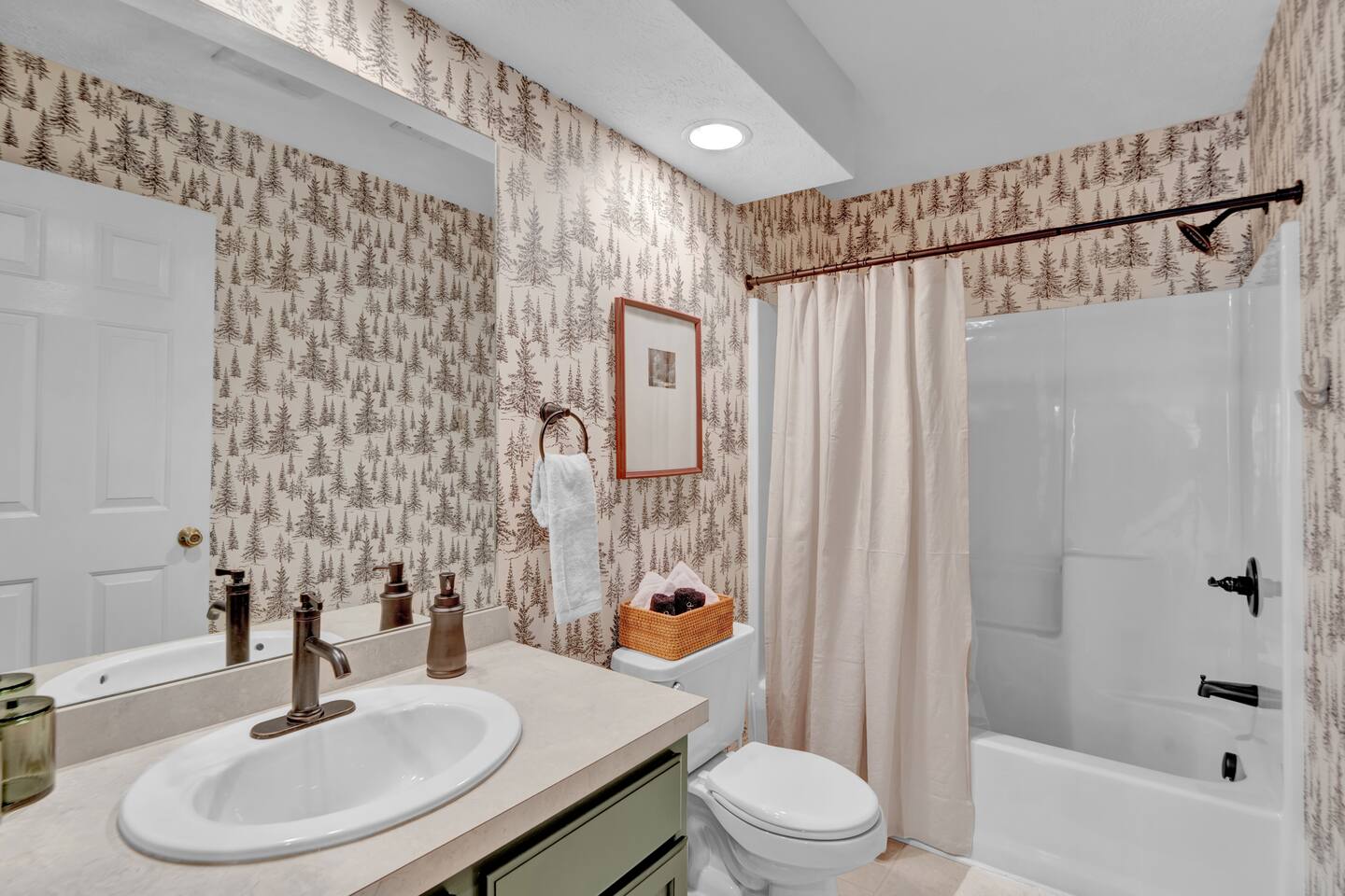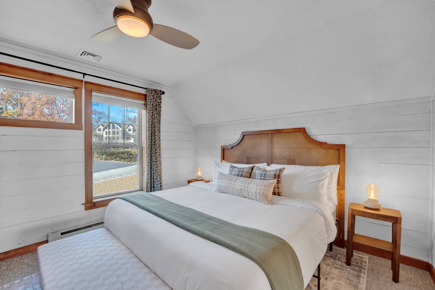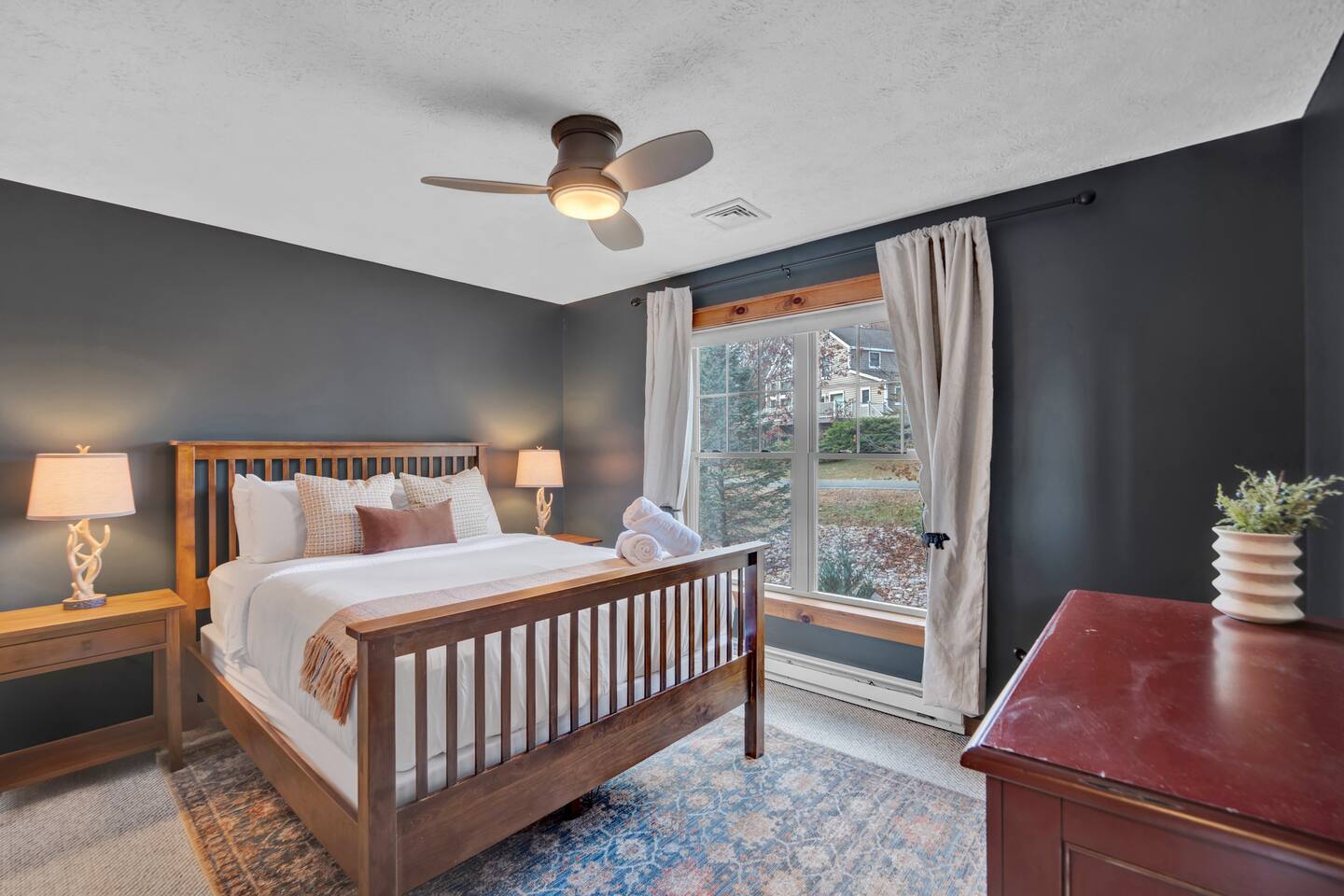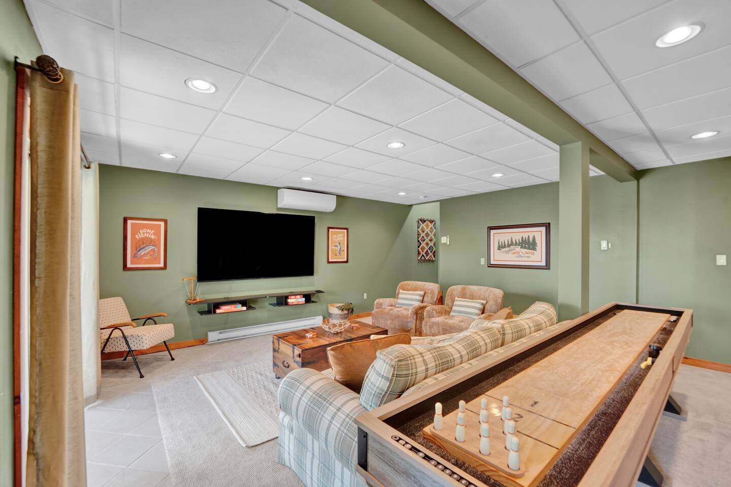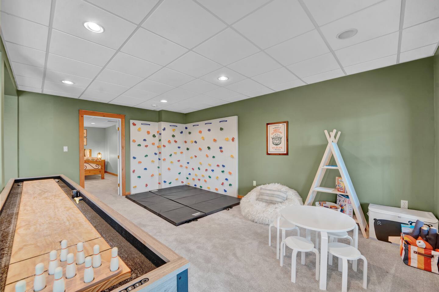 Welcome to Sunrise Chalet, a stylish and warm mountain-retreat basecamp for your Poconos adventure! Just minutes from Camelback’s slopes and trails, this inviting mountain home offers the perfect mix of comfort and excitement — unwind in the hot tub and take in the mountain views, let the kids explore and play on the custom-built climbing wall, or gather round the dining table late into the night. ✨ KEY FEATURES ✨ - 2,300+ sq. ft. | 3 bedrooms | 3 baths | Sleeps 8 - 6-person hot tub w. seasonal mtn views - Rec room with shuffleboard table, 80” smartTV, custom climbing wall & kids corner - Kid-friendly w/ high-chair, stroller, baby gate, bedrails, floorseat, bottle warmer & pack n’ play provided - Community outdoor pool, splash zone, playground & tennis courts - Large deck with outdoor dining, couch & rocking chairs, propane fire pit & Weber gas grill - Central AC throughout - Natural stone wood burning fireplace - Modern, well-equipped kitchen with quality cookware, appliances, and air-fryer 🛏️ BEDROOMS ↟ The home's 3 bedrooms offer comfort & privacy for your whole group – adults & children alike! On the main floor, you’ll find two comfortable queen bedrooms conveniently located next to a full bathroom with a tub. Each room is thoughtfully decorated and furnished with a dresser and closet. Upstairs, the master bedroom is a secluded en-suite, offering a king-sized bed, walk-in closet, dresser, dedicated workspace, and attached full bathroom. 🛁 BATHROOMS ↟ Enjoy a retreat-within-your-retreat in our three full-sized bathrooms. The main floor bathroom has a convenient shower/tub combo and a vanity sink, perfect for everyday use and bathing the kiddos after a long day of adventure. Upstairs, the master bathroom offers a spacious shower, tub, and a double-sink vanity with a large mirror - great for couples or families. The downstairs bathroom includes a large walk-in shower and sink, ideal for guests or quick refreshes. All bathrooms are fully stocked with complimentary hand towels, wash cloths, makeup towels, hair dryers, and premium bath-time essentials 🍳 KITCHEN & DINING AREA ↟ This bright, open kitchen makes meal time a breeze, with easy access to the 8-seat dining table and serene views of the surrounding woods. It’s fully stocked with stainless steel appliances—including a fridge with water dispenser, wine fridge, oven, stove, microwave, dishwasher, air fryer, crockpot and waffle maker - plus all the cookware, utensils, and serving pieces you need to create memorable meals with ease. Can’t forget the coffee (and tea, for all our tea people)! Kickstart your morning in the mountains with a Keurig dual drip & k-cup coffee machine. Or, choose from our extensive selection of Stash teas for a delightful variety to suit your taste buds. 🛋️ LIVING AREAS ↟ This living room is made for relaxing! Sink into the large L-shaped sectional or the stylish accent chair, both facing a cozy stone fireplace. Enjoy your favorite shows on the wall-mounted smartTV with all of your favorite streaming apps, play games with loved ones, or simply unwind after a day outdoors. Downstairs, the recreation room offers endless fun for everyone. Challenge each other on the shuffleboard table, let the kids explore the dedicated play corner with toys, books, and a custom-built, padded rock climbing wall, or sink into the couch while enjoying your favorite show on the 80” mounted smart TV. 🌅 OUTDOOR SPACE ↟ Enjoy direct views of Camelback mountain and the serenity of nature on our two-story deck! The upper deck features a propane fire pit table surrounded by a comfy outdoor sectional and chairs - perfect for cozy evenings under the stars. There’s also a 6-person dining table with an umbrella and Weber gas grill for al fresco meals with family or friends. The lower deck is your private relaxation spot, complete with a state-of-the-art hot tub, hammock, and 4-person outdoor dining table. Both levels offer stunning seasonal views of the ski slopes, making this the perfect setting for morning coffee, sunset cocktails, or simply unwinding after a day of adventure. Lastly, enjoy access (separate fee required)to the community's amazing amenities, including a brand new outdoor pool, splash zone, kid's playground and tennis courts.