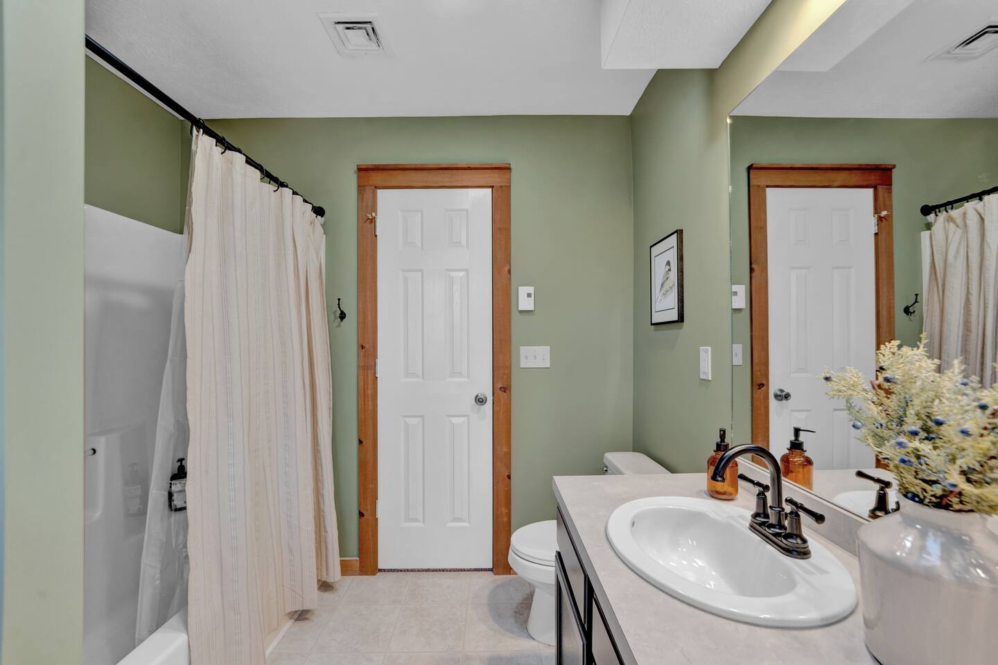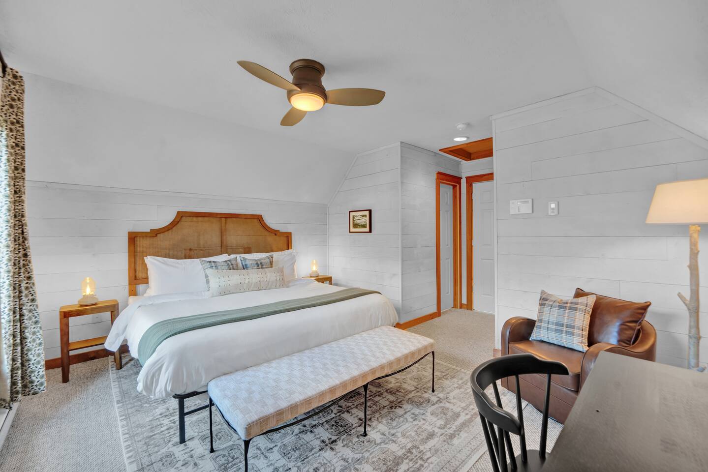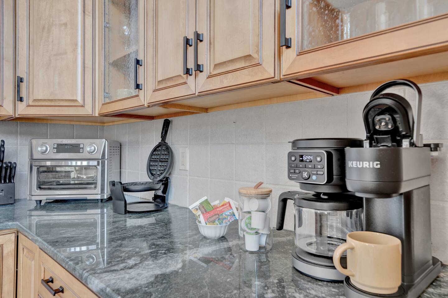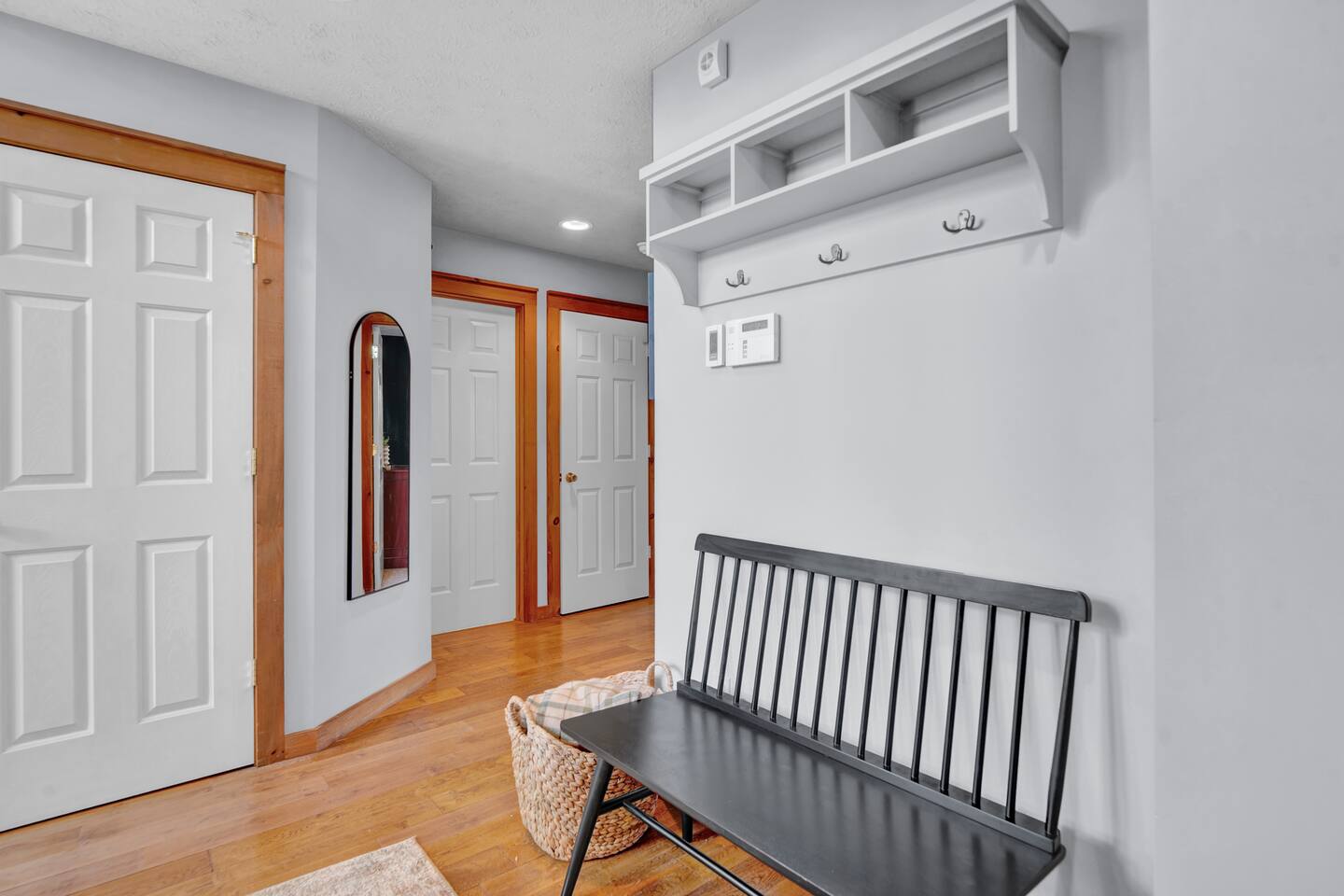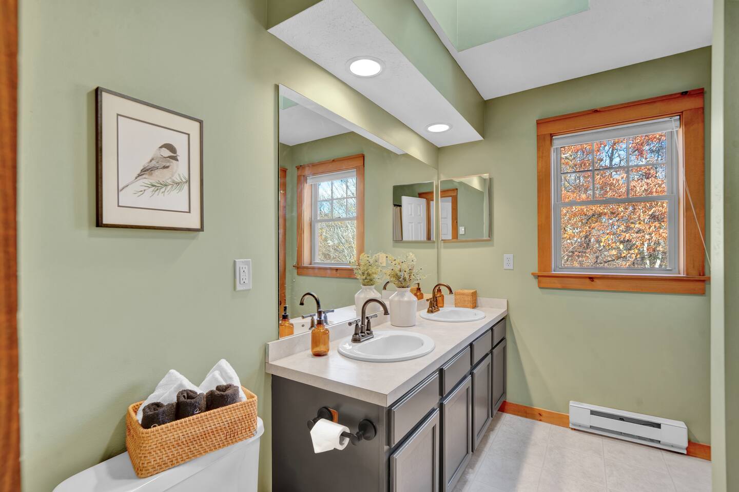Welcome to Sunrise Chalet, a stylish and warm mountain-retreat basecamp for your Poconos adventure! Just minutes from Camelback’s slopes and trails, this inviting mountain home offers the perfect mix of comfort and excitement — unwind in the hot tub and take in the mountain views, let the kids explore and play on the custom-built climbing wall, or gather round the dining table late into the night. ✨ KEY FEATURES ✨ - 2,300+ sq. ft. | 3 bedrooms | 3 baths | Sleeps 8 - 6-person hot tub w. seasonal mtn views - Rec room with shuffleboard table, 80” smartTV, custom climbing wall & kids corner - Kid-friendly w/ high-chair, stroller, baby gate, bedrails, floorseat, bottle warmer & pack n’ play provided - Community outdoor pool, splash zone, playground & tennis courts - Large deck with outdoor dining, couch & rocking chairs, propane fire pit & Weber gas grill - Central AC throughout - Natural stone wood burning fireplace - Modern, well-equipped kitchen with quality cookware, appliances, and air-fryer 🛏️ BEDROOMS ↟ The home's 3 bedrooms offer comfort & privacy for your whole group – adults & children alike! On the main floor, you’ll find two comfortable queen bedrooms conveniently located next to a full bathroom with a tub. Each room is thoughtfully decorated and furnished with a dresser and closet. Upstairs, the master bedroom is a secluded en-suite, offering a king-sized bed, walk-in closet, dresser, dedicated workspace, and attached full bathroom. 🛁 BATHROOMS ↟ Enjoy a retreat-within-your-retreat in our three full-sized bathrooms. The main floor bathroom has a convenient shower/tub combo and a vanity sink, perfect for everyday use and bathing the kiddos after a long day of adventure. Upstairs, the master bathroom offers a spacious shower, tub, and a double-sink vanity with a large mirror - great for couples or families. The downstairs bathroom includes a large walk-in shower and sink, ideal for guests or quick refreshes. All bathrooms are fully stocked with complimentary hand towels, wash cloths, makeup towels, hair dryers, and premium bath-time essentials 🍳 KITCHEN & DINING AREA ↟ This bright, open kitchen makes meal time a breeze, with easy access to the 8-seat dining table and serene views of the surrounding woods. It’s fully stocked with stainless steel appliances—including a fridge with water dispenser, wine fridge, oven, stove, microwave, dishwasher, air fryer, crockpot and waffle maker - plus all the cookware, utensils, and serving pieces you need to create memorable meals with ease. Can’t forget the coffee (and tea, for all our tea people)! Kickstart your morning in the mountains with a Keurig dual drip & k-cup coffee machine. Or, choose from our extensive selection of Stash teas for a delightful variety to suit your taste buds. 🛋️ LIVING AREAS ↟ This living room is made for relaxing! Sink into the large L-shaped sectional or the stylish accent chair, both facing a cozy stone fireplace. Enjoy your favorite shows on the wall-mounted smartTV with all of your favorite streaming apps, play games with loved ones, or simply unwind after a day outdoors. Downstairs, the recreation room offers endless fun for everyone. Challenge each other on the shuffleboard table, let the kids explore the dedicated play corner with toys, books, and a custom-built, padded rock climbing wall, or sink into the couch while enjoying your favorite show on the 80” mounted smart TV. 🌅 OUTDOOR SPACE ↟ Enjoy direct views of Camelback mountain and the serenity of nature on our two-story deck! The upper deck features a propane fire pit table surrounded by a comfy outdoor sectional and chairs - perfect for cozy evenings under the stars. There’s also a 6-person dining table with an umbrella and Weber gas grill for al fresco meals with family or friends. The lower deck is your private relaxation spot, complete with a state-of-the-art hot tub, hammock, and 4-person outdoor dining table. Both levels offer stunning seasonal views of the ski slopes, making this the perfect setting for morning coffee, sunset cocktails, or simply unwinding after a day of adventure. Lastly, enjoy access (separate fee required)to the community's amazing amenities, including a brand new outdoor pool, splash zone, kid's playground and tennis courts.