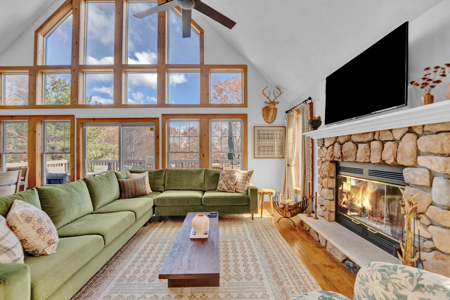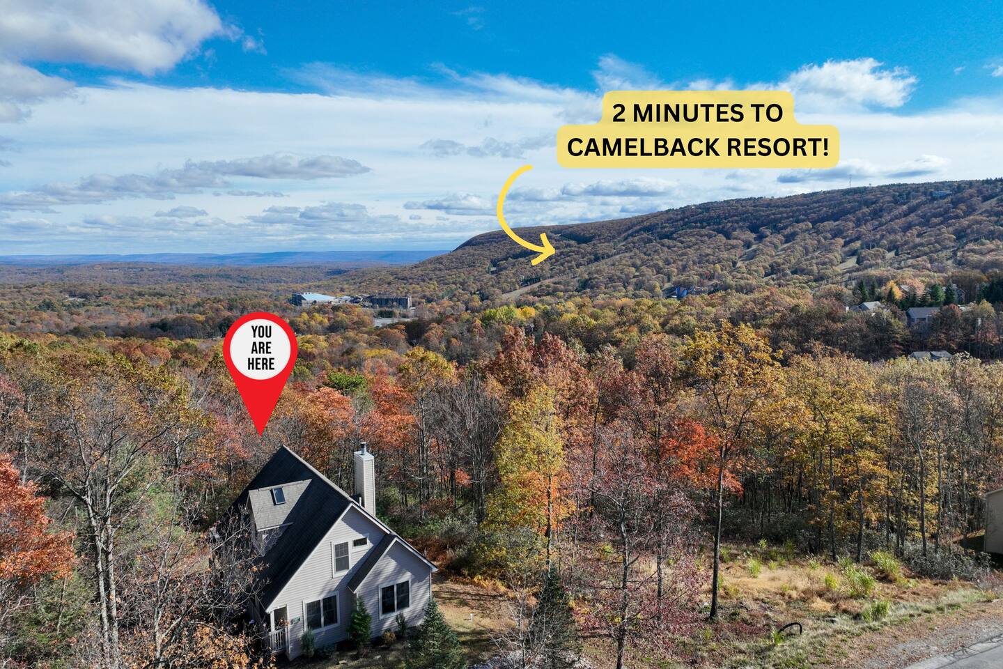 Retreat to this warm & serene Poconos escape with views of Camelback Mountain. Floor-to-ceiling windows, a natural stone fireplace, two spacious living areas, a hot tub, kid's climbing wall & large deck with fire pit set the scene for relaxation after days spent skiing, hiking or exploring nearby waterparks. ⛰️ 2 min to Camelback Resort (largest ski area in the Poconos!) 🎰 15 min to Mount Airy Casino 🛝 20 min to Kalahari Waterpark & Resort Experience the Poconos with us and learn more below!