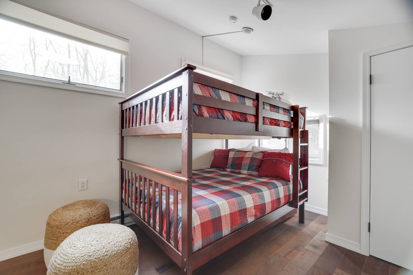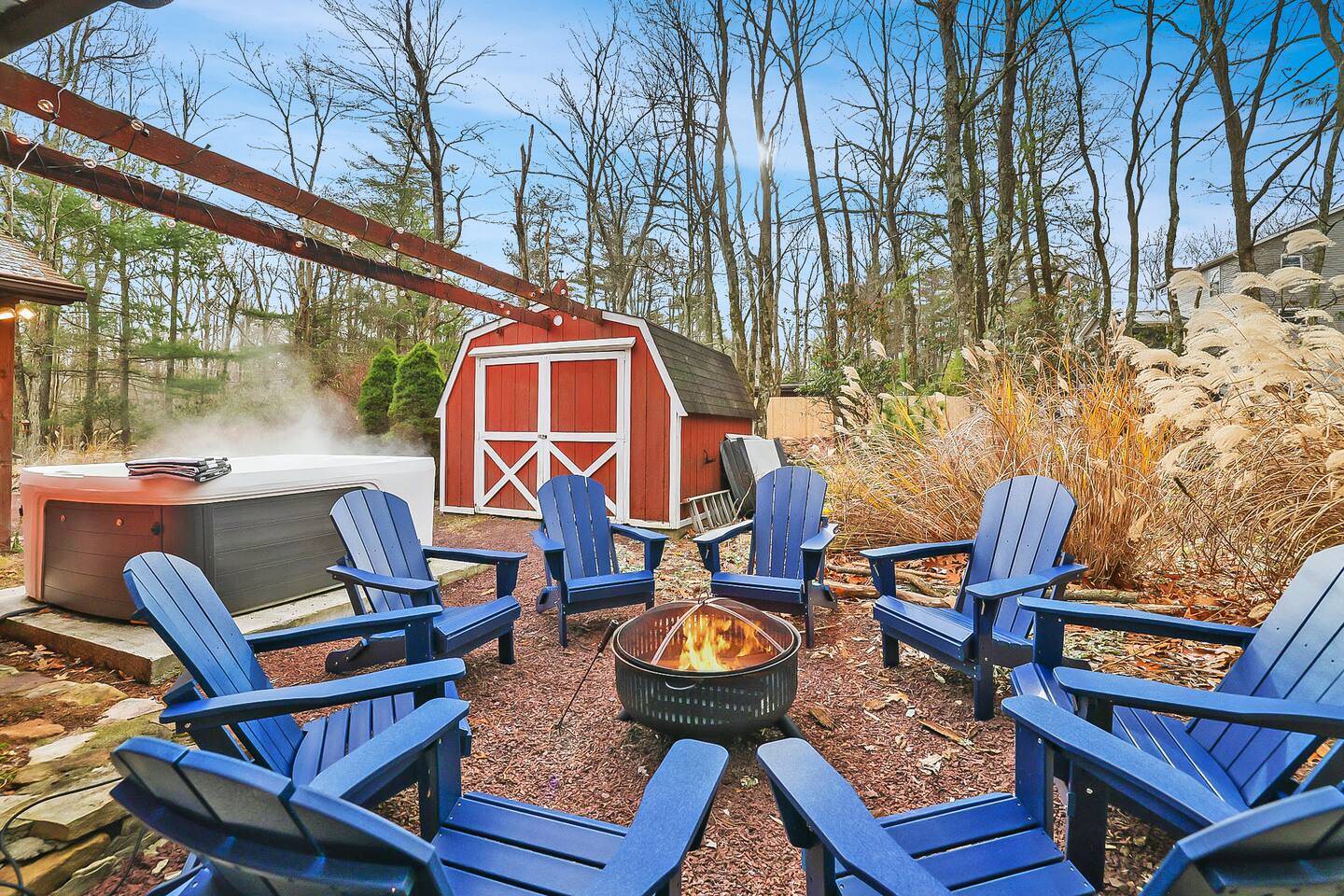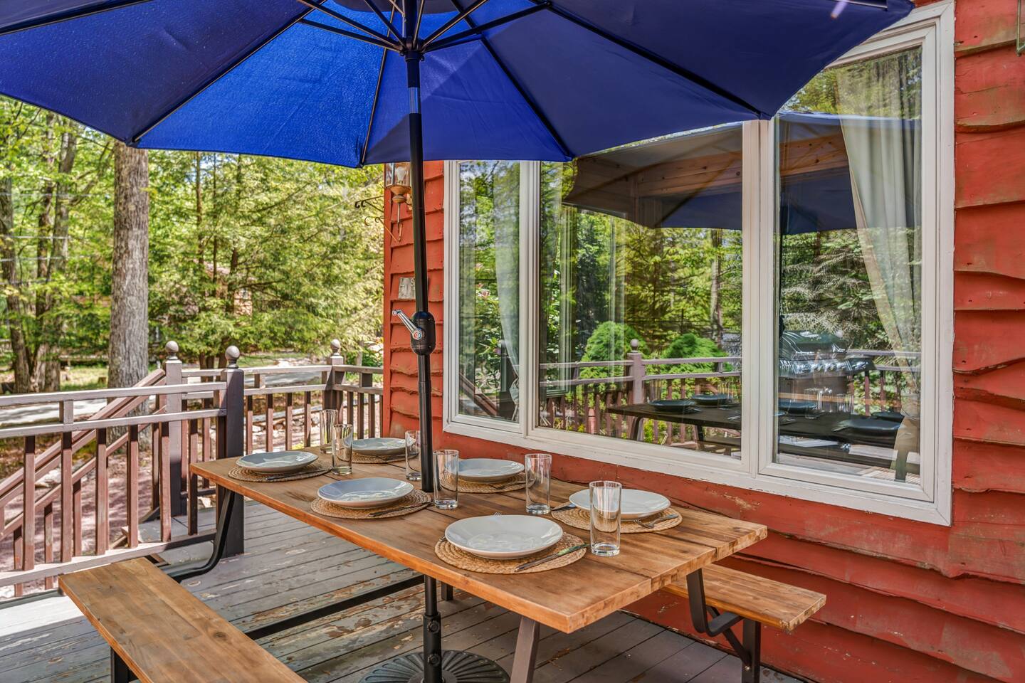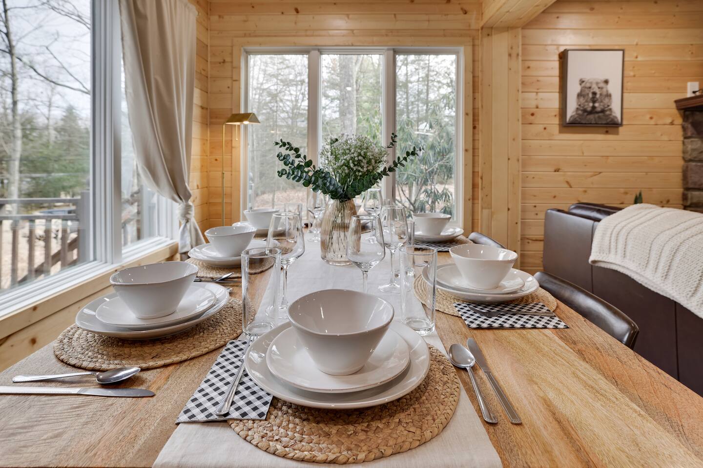 Welcome to Red Oak Retreat, nestled in the heart of the Poconosβ popular Lake Harmony area. This beautiful cabin seamlessly blends cozy, rustic charm with a touch of modern, creating a welcoming retreat that exudes both warmth and contemporary style. β β β β β Past guests have said: βPerfect location for a family getaway! Very close to Jack Frost and Big Boulder. The house was comfortable, cozy, and very clean.β β Claire Β· Stayed with kids βThis house is nothing short of beautiful! Staying on Lake Harmony is a MUST, there are restaurants and activities to do very close to the house. The house was extremely clean and still cozy! The host was able to respond very quick- even though we had no issues at all!" β Madison Β· Stayed with friends β β β β β KEY FEATURES: β’ 3 bedrooms + loft room; comfortably sleeping 11 (1 King, 1 Queen, 1 Double, and Bunk Room w/ 2 Doubles + 1 Twin) β’ 2 full bathrooms ft. 2 luxury walk-in showers β’ 8-person hot tub β’ Large living room with 55β smart TV with streaming app & indoor gas fireplace β’ Outdoor fire pit with Polywood Adirondack chairs β’ Modern, well-equipped kitchen with stainless steel cookware & two dining tables β’ Spacious master bedroom with a king-sized bed, smart TV and en-suite bath β’ High-speed WiFi β’ Kid-friendly w/ gate, high chair, and pack & play provided β’ Board games β β β β β β BEDROOMS β The homeβs 4 bedrooms offer privacy for your whole group β adults & children alike! The spacious master bedroom boasts a king-sized bed and a 44β smart TV, as well as a private, en-suite bathroom. There are two other bedrooms on the first floor: one featuring a queen-sized bed, and one with a double bed. Both evoke the rustic-yet-modern vibe that makes this home so welcoming and cozy. Finally, the fourth loft-style bedroom upstairs features a bunk bed (two double mattresses) and a separate twin-sized bed. This little hideaway is a favorite for kids! Note that the stairs leading up to the loft are narrow, but not an issue for most. β BATHROOMS β Enjoy a retreat-within-your-retreat in our TWO full-sized, recently renovated bathrooms. The master en-suite bathroom features a large shower with river-rock tiling to keep you enveloped in nature. The hall bathroom also features a large standing shower adorned with modern subway tiles, and is easily accessible for the rest of your group. All bathrooms are fully stocked with complimentary hand towels, wash cloths, makeup towels, hair dryers, and premium bath-time essentials. β KITCHEN β The chef in your group will love how spacious and open this kitchen is. So. Much. Counter Space! This kitchen offers all the quality stainless steel appliances, utensils and cookware needed to feel right at home. Think: all the stainless steel pots & pans, serving trays, and dishes you need to whip up a meal to remember. Canβt forget the coffee (and tea, for all our tea people). Kickstart your morning routine in the mountains with our brand new two-in-one drip coffee/Keurig machine. Or, choose from our extensive selection of Stash teas for a delightful variety to suit your taste buds. Whether you're a coffee connoisseur or a tea enthusiast, our thoughtfully curated caffeine station promises to wake you up. The kitchen also features a 4-person dining table (in addition to the 7-person dining table in the main living area) β perfect for a quick cup of coffee or bite to eat before hitting the slopes. β LIVING ROOM β This is a living room made for lounging! Two large, brand new leather couches face a cozy stone, gas-powered fireplace, as well as a 55β smart TV with all the streaming apps youβve come to love. The perfect place for kicking your feet up after a day spent outdoors. A quaint reading nook also offers extra seating, if youβd rather be snuggled up with a book. β DINING AREA β Adjacent to the living room is a 7-person dining table β perfect for those memorable dinners-that-blend-into-nighttime, and maybe even some friendly competition at family game night. From the top-line Crate & Barrel dinnerware, to the well appointed table decor, this space is designed to be the backdrop of your evenings. β OUTDOOR SPACE β The outdoor space is rich with amenities and activities, boasting an 8-person hot tub, a fire pit surrounded by 8 brand new polywood Adirondack chairs, a relaxing garden hammock and a corn-hole set. There is also a large deck off the back of the house featuring a six-person outdoor teakwood sectional, a modern wooden picnic table, and a brand new stainless steel gas BBQ grill. Whether looking to escape for solo relaxation or actively enjoy the beautiful Lake Harmony scenery, there is no shortage of outdoor amenities! The home is on a wooded corner lot, and offers a U-shaped driveway with parking for 6 vehicles.